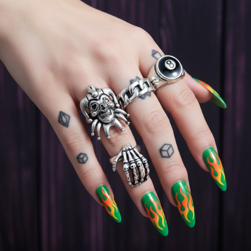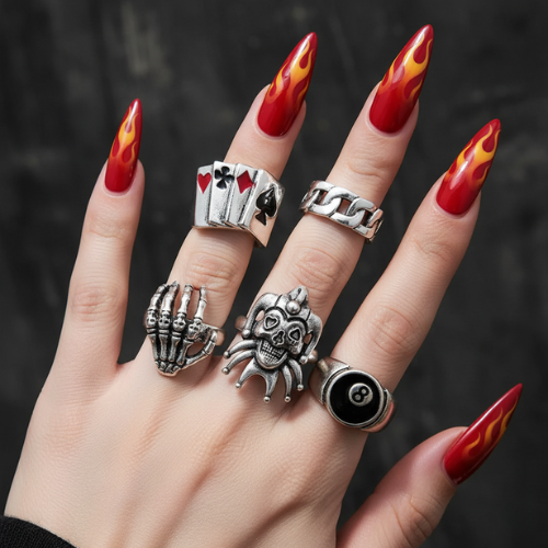 เพิ่มสไตล์สุดเท่ด้วย เซ็ตแหวน 6 ชิ้นแนวพังก์ โป๊กเกอร์ และโจ๊กเกอร์ ดีไซน์สีเงินสุดดาร์ก พร้อมลายโครงกระดูก ลูกบิลเลียด และแฟชั่นโกธิก เหมาะสำหรับผู้ชายและผู้หญิงที่ชอบความโดดเด่นแนว Emo หรือ Couple Wear ใส่ได้ทุกโอกาส เสริมลุคแฟชั่นที่แตกต่างและไม่ซ้ำใคร