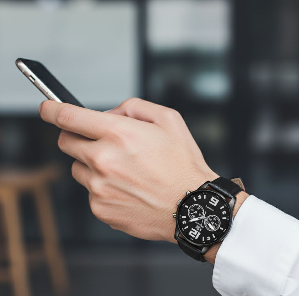 นาฬิกาข้อมือแฟชั่นสำหรับผู้ชาย 5 ชิ้น ดีไซน์สปอร์ต – นาฬิกาควอตซ์หนังหน้าปัดใหญ่สไตล์เรโทรสำหรับผู้ชาย สไตล์คลาสสิกสบายๆ