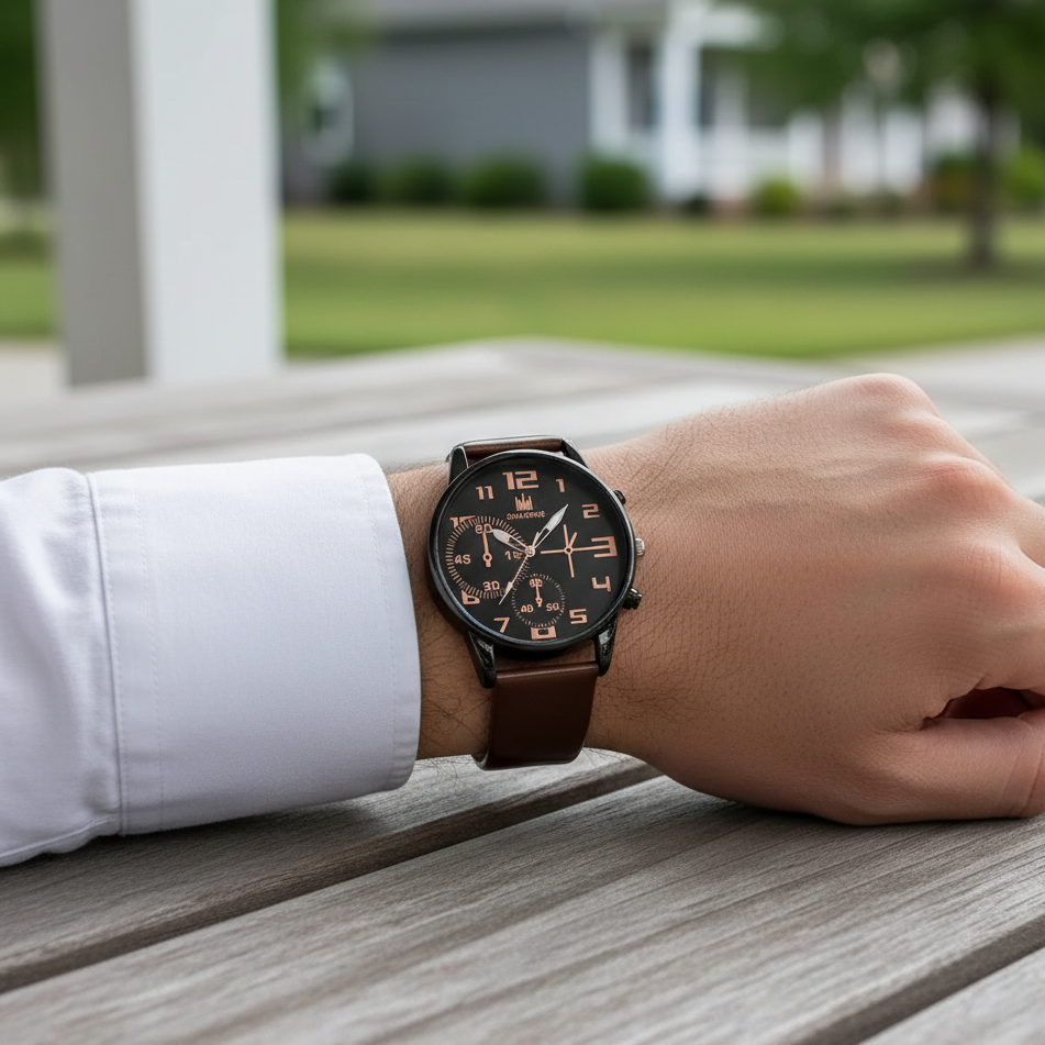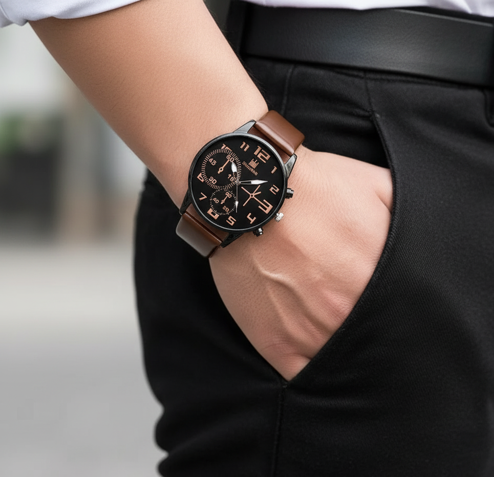 ชุดนาฬิกาผู้ชาย 5 ชิ้น สไตล์สปอร์ตและแฟชั่น ดีไซน์เรโทร หน้าปัดใหญ่คลาสสิก ระบบควอตซ์ สายนาฬิกาหนังสีน้ำตาล สวมใส่ได้ทุกโอกาส ทั้งลำลอง ธุรกิจ และปาร์ตี้ ดูเท่ทันสมัยในเรือนเดียวหรือสลับสไตล์ทุกวัน ของขวัญสุดพิเศษสำหรับผู้ชายที่รักแฟชั่นและความเรียบหรู