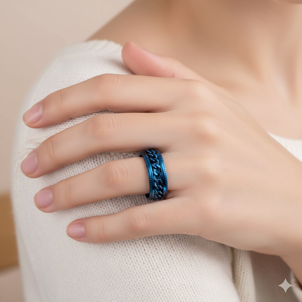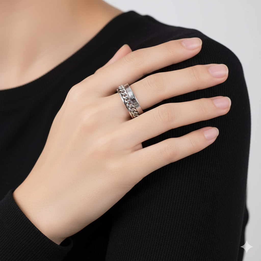สัมผัสสไตล์และฟังก์ชันการใช้งานด้วยแหวนโซ่หมุนได้ไทเทเนียมสตีลของเรา ออกแบบมาสำหรับทั้งผู้หญิงและผู้ชาย แหวนหมุนนี้มาพร้อมคุณสมบัติคลายแรงกด ดีไซน์โซ่หมุนที่เป็นเอกลักษณ์ และใช้งานได้หลากหลายเป็นที่เปิดขวด เหมาะอย่างยิ่งสำหรับเป็นของขวัญสุดเท่ เครื่องประดับแฟชั่น หรือเครื่องประดับประจำวันที่เพิ่มความทันสมัย