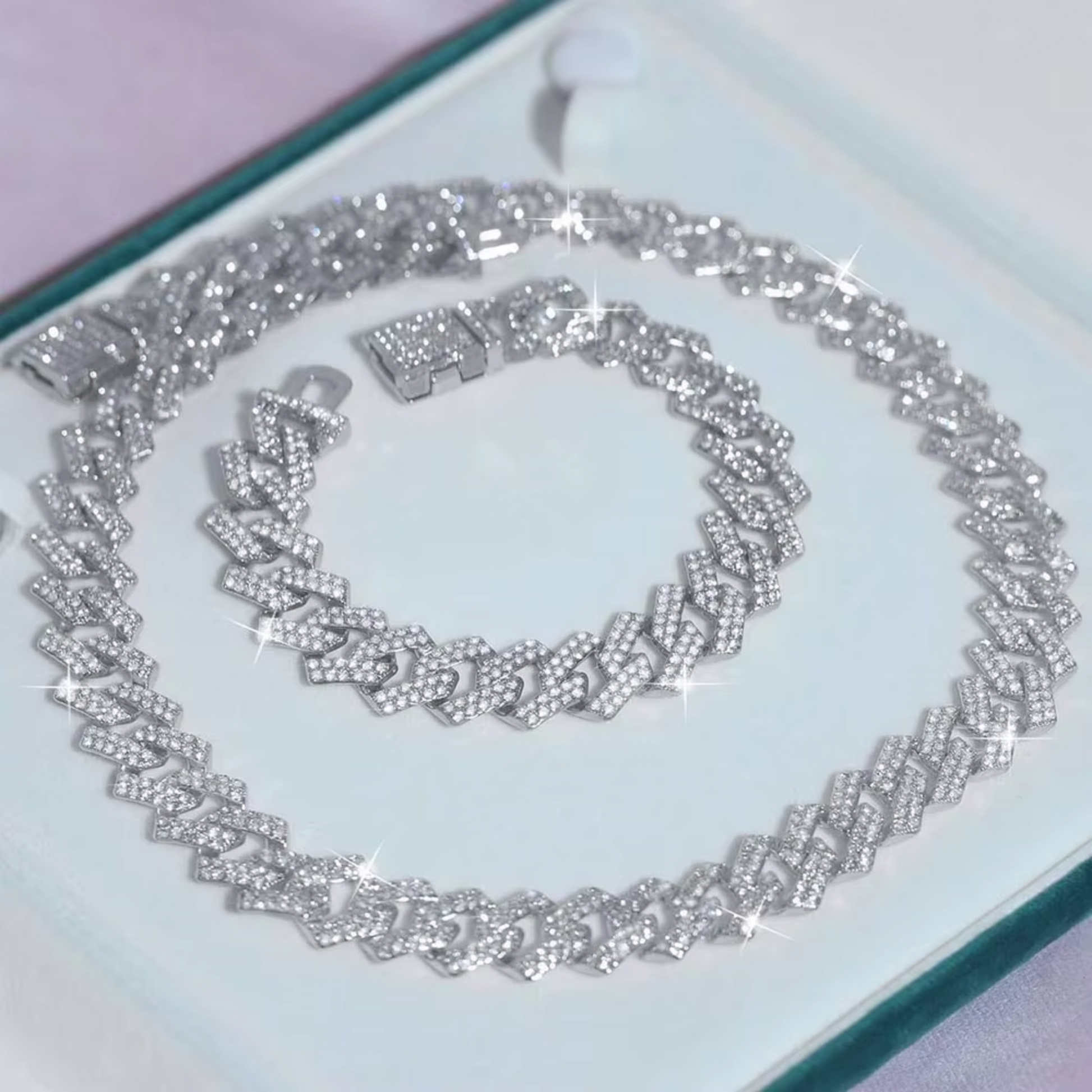 สร้อยคอและสร้อยข้อมือแฟชั่นกว้าง 16 มม. สุดเก๋ไก๋และมีสไตล์ เครื่องประดับฮิปฮอป เครื่องประดับ Rhinestone สุดอินเทรนด์ ของขวัญสำหรับผู้ชายและผู้หญิง